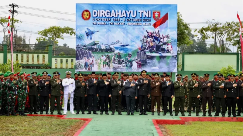 BERANDAPOST.COM, PENAJAM – Bupati Penajam Paser Utara (PPU) Mudyat Noor menghadiri upacara HUT ke-80 TNI, Markas Kodim 0913 PPU, Minggu (5/10/2025). Komandan Kodim 0913 PPU Letkol Inf Andika Gassakti memimpin upacara.