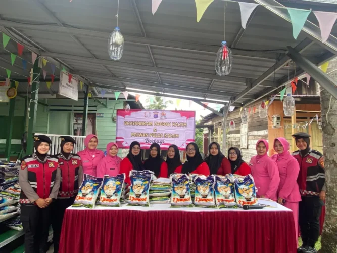 Dalam kegiatan itu, Polwan dan Bhayangkari menyalurkan 100 karung beras berukuran lima kilogram kepada 100 warga sekitar Posyandu Manggar. Bantuan ini merupakan bagian dari program kepedulian sosial gagasan Ibu Asuh Polwan Polda Kaltim.