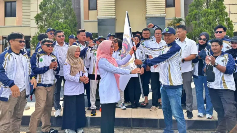 Bupati Berau Sri Juniarsih Mas melepas kontingen PWI Berau dengan Ketua Yuda Perdana, Rabu (15/10/2025) selumbari.