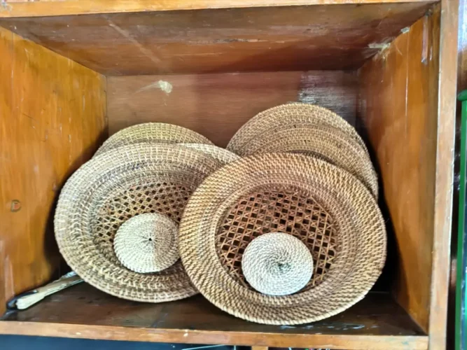 Rumah produksi perajin yang berdiri sejak akhir 2024 kini menaungi sekitar 20 perajin lokal. Mereka memproduksi tatakan gelas, piring, vas bunga, dan mangkuk dari rotan alami.