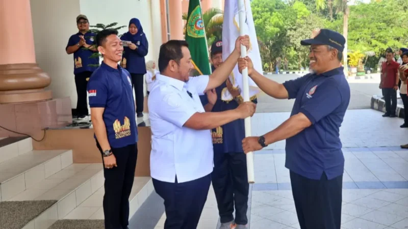 Bupati PPU, Mudyat Noor (baju putih) menyerahkan pataka kontingen Porsenijar 2025. (Berandapost.com/Istimewa)