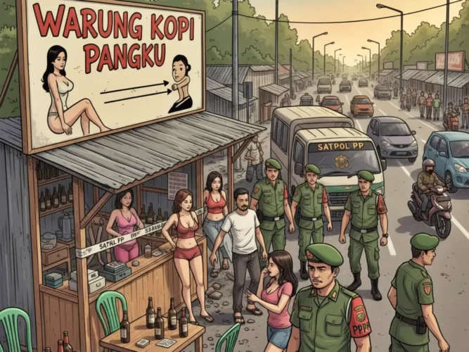 Satpol PP Kaltim menemukan lonjakan praktik prostitusi di jalan poros Samarinda–Kukar saat operasi terpadu, lengkap dengan miras dan kondom sebagai barang bukti. (Ilustrasi/Gemini)