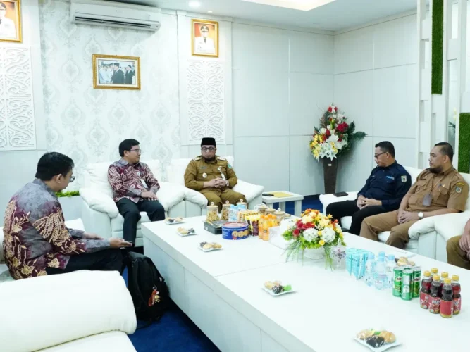 Wakil Bupati Paser, Ikhwan Antasari, menerima kunjungan Kepala BPSDMP Kominfo Banjarmasin, Syarifuddin, bersama tim dalam ruang kerjanya, Selasa (25/11/2025).