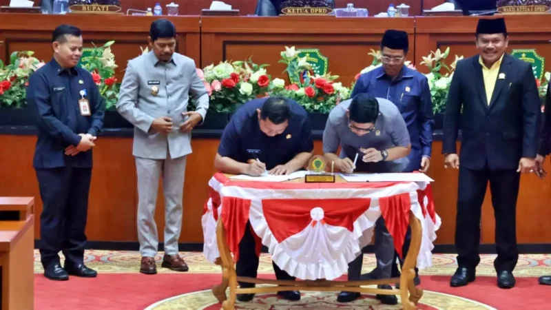 Bupati PPU Mudyat Noor dan Ketua DPRD PPU Raup Muin menandatangani dokumen Rencana APBD PPU 2026. (Berandapost.com/Istimewa)