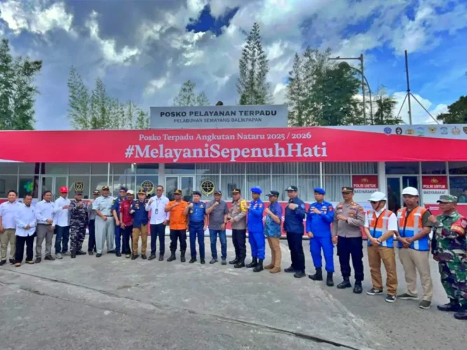 BERANDAPOST.COM, BALIKPAPAN – Posko Angkutan Natal 2025 dan Tahun Baru 2026 (Nataru) resmi beroperasi di Pelabuhan Semayang Balikpapan sejak 18 Desember 2025. Posko ini akan berlangsung selama 22 hari hingga 8 Januari 2026.