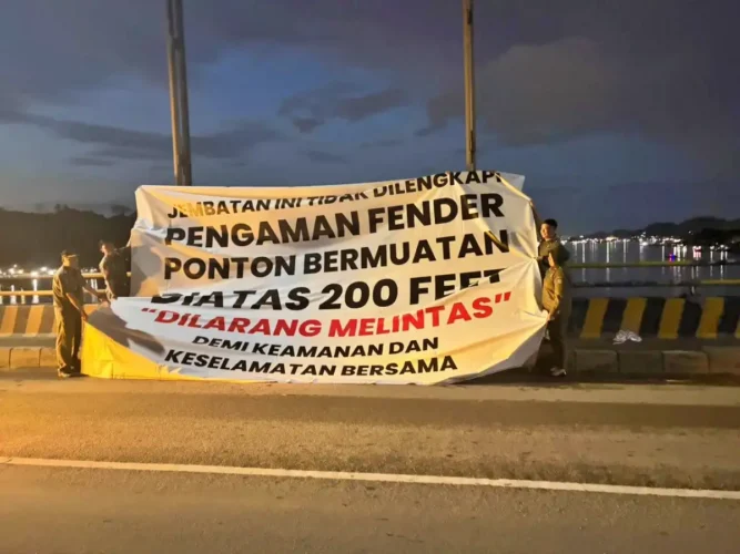 “Sebagai upaya pencegahan terjadinya kerusakan infrastruktur serta menjaga keselamatan dan keamanan Jembatan Mahulu, khususnya dari risiko benturan kapal atau tongkang bermuatan besar, maka perlu pemasangan media informasi berupa spanduk,” kata Munawwar, Rabu (24/12/2025).