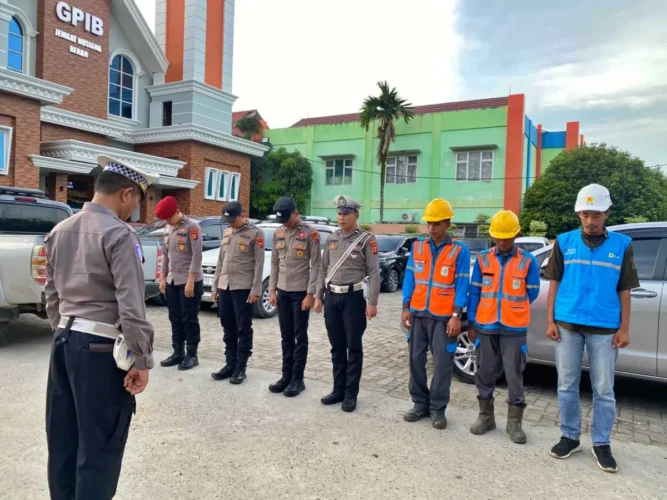 Polres Berau mengamankan ibadah Natal di GPIB Hosiana Tanjung Redeb demi kenyamanan jemaat dan menjaga kondusivitas Nataru 2026 di Kabupaten Berau. (Istimewa)