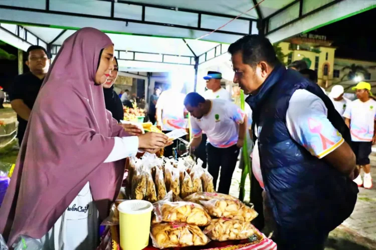 BERANDAPOST.COM, PENAJAM – Bupati Penajam Paser Utara (PPU), Mudyat Noor, menyambangi pelaku Usaha Mikro, Kecil, dan Menengah (UMKM) di Gebyar Gerbang Nusantara 2025. Lokasinya halaman Kantor Bupati PPU, Kilometer 09 Nipah-Nipah, Jumat (26/12/2025).
