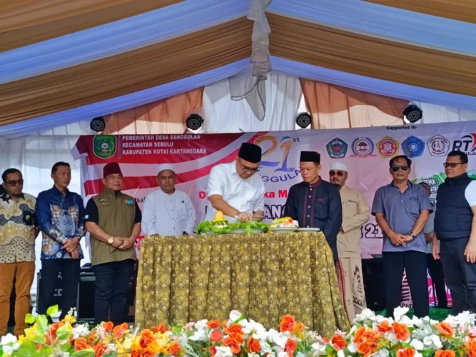 BERANDAPOST.COM, TENGGARONG – Bupati Kutai Kartanegara (Kukar), Aulia Rahman Basri menghadiri HUT ke-21 Desa Sanggulan, Kecamatan Sebulu, Sabtu (27/12/2025).