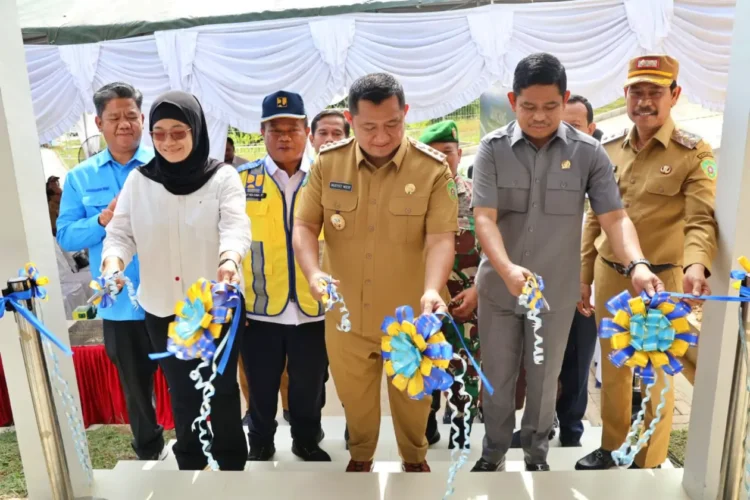 Bupati PPU Mudyat Noor bersama Ketua DPRD, Raup Muin menggunting pita peresmian IPA Baja 50 LPS di Sepaku. (Berandapost.com/Humas Pemkab PPU)