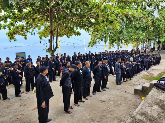 Ratusan pendekar PSHT berkumpul sebelum melakukan aksi bersih-bersih Pantai Monpera Balikpapan. (Istimewa)