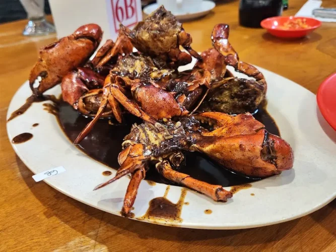Menu favoritnya antara lain kepiting lada hitam, ikan bakar, dan ada juga udang dengan berbagai saus. Harganya juga relatif terjangkau untuk kelas restoran keluarga. Ruangannya luas dan nyaman.