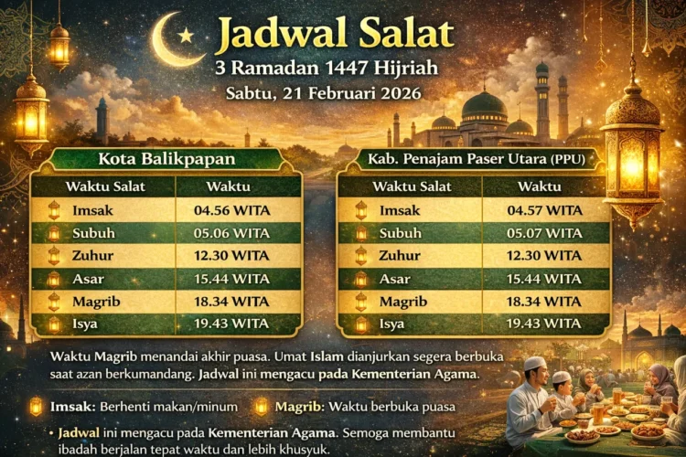 BERANDAPOST.COM, BALIKPAPAN – Umat Muslim memasuki 3 Ramadan 1447 Hijriah pada Sabtu (21/2/2026). Warga Balikpapan dan Penajam Paser Utara (PPU) menunaikan puasa juga dengan mengacu pada jadwal imsakiyah.