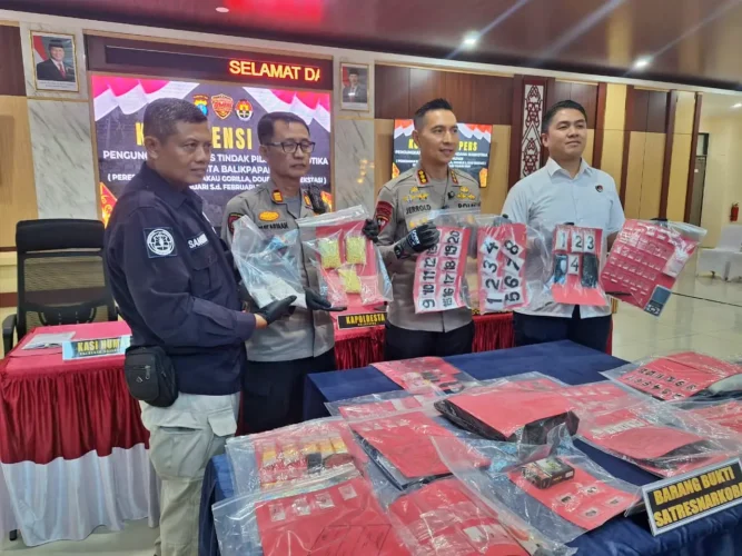 BERANDAPOST.COM, BALIKPAPAN – Kapolresta Balikpapan, Jerrold HY Kumontoy, memaparkan hasil Operasi Pekat Mahakam 2026 yang berlangsung Januari hingga Februari 2026.