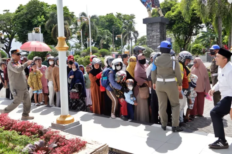 Masyarakat Samarinda rela antre untuk mendapatkan takjil gratis. Pemprov Kaltim berbagi takjil gratis sebanyak ribuan paket setiap hari melalui program Gebyar Ramadan di halaman Kantor Gubernur. (Istimewa)