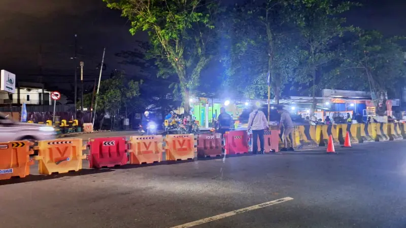 Bahkan sejumlah petugas telah mamasang barrier atau pembatas tepat depan persimpangan MT Haryono dengan Agung Tunggal pada Kamis (2/3/2026) malam.