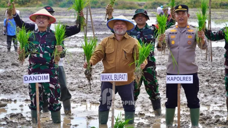 Pemkab Berau gelar tanam padi serentak di Labanan Jaya, Kamis (9/4/2026). Program cetak sawah rakyat dorong produksi pangan dan swasembada. (Prokopim)
