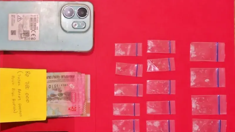 Penindakan pertama berlangsung Senin (13/4/2026) sore. Polisi menangkap H (38) dalam rumahnya. Dari lokasi, petugas menemukan 20 poket sabu seberat 6,54 gram. Atap pintu rumah walet menjadi lokasi pelaku menyembunyikan barang haram tersebut.