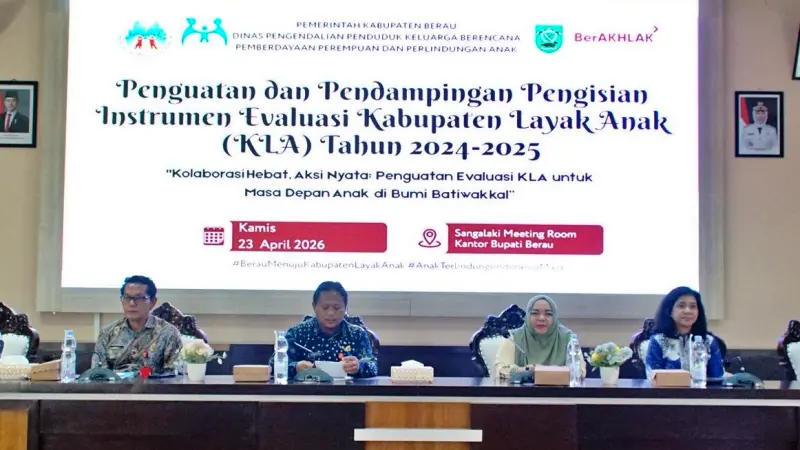 BERANDAPOST.COM, TANJUNG REDEB – Pemerintah Kabupaten Berau terus memacu upaya menghadirkan lingkungan ramah anak. DPPKBP3A Berau menggelar bimbingan teknis pengisian instrumen Evaluasi Mandiri Kabupaten/Kota Layak Anak (KLA) sebagai pijakan memperkuat perlindungan anak, Kamis (23/4/2026).